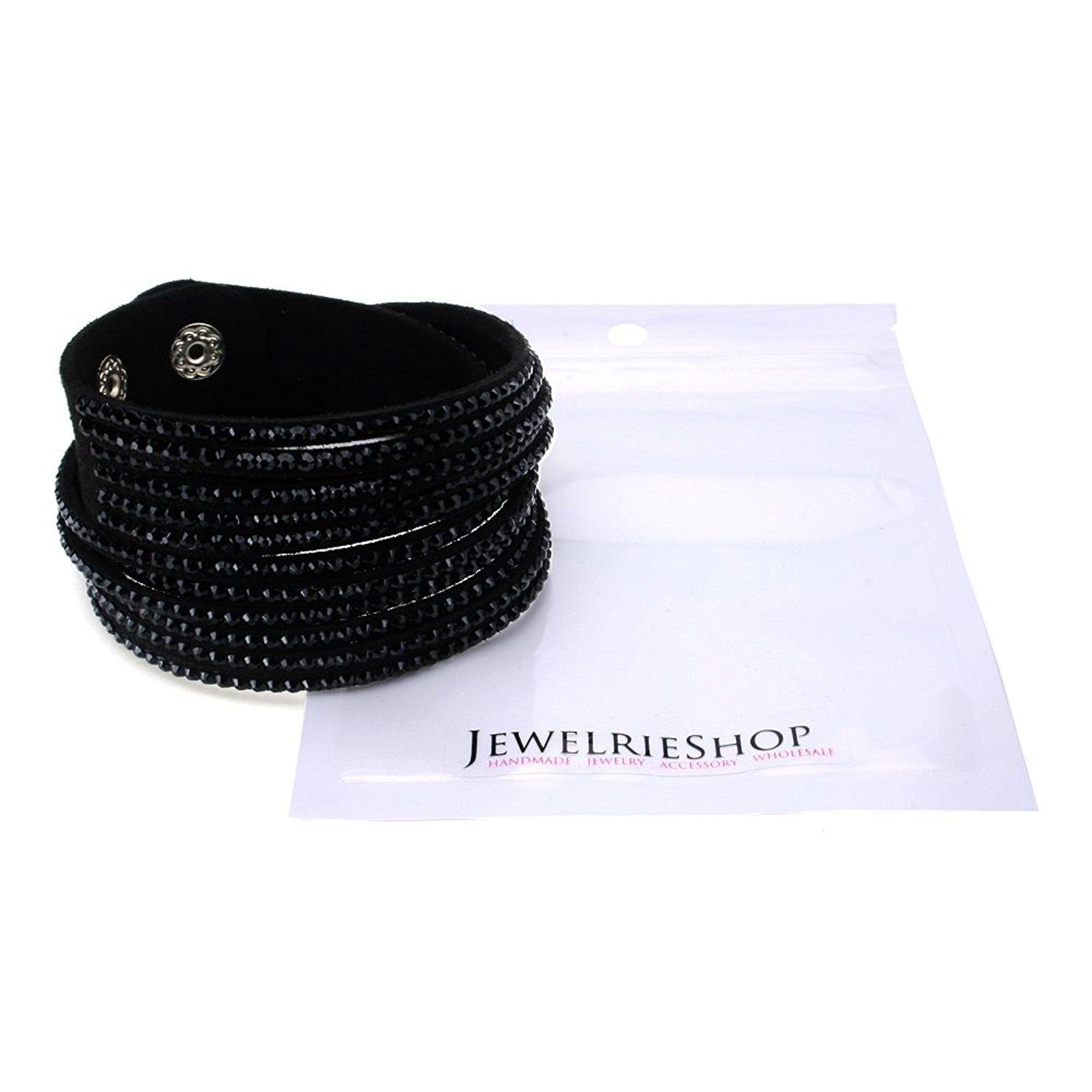 JEWELRIESHOP Bling Bling Crystal Rhinestones Soft Comfortable Velvet, Adjustable Size Button Clasps Bracelet