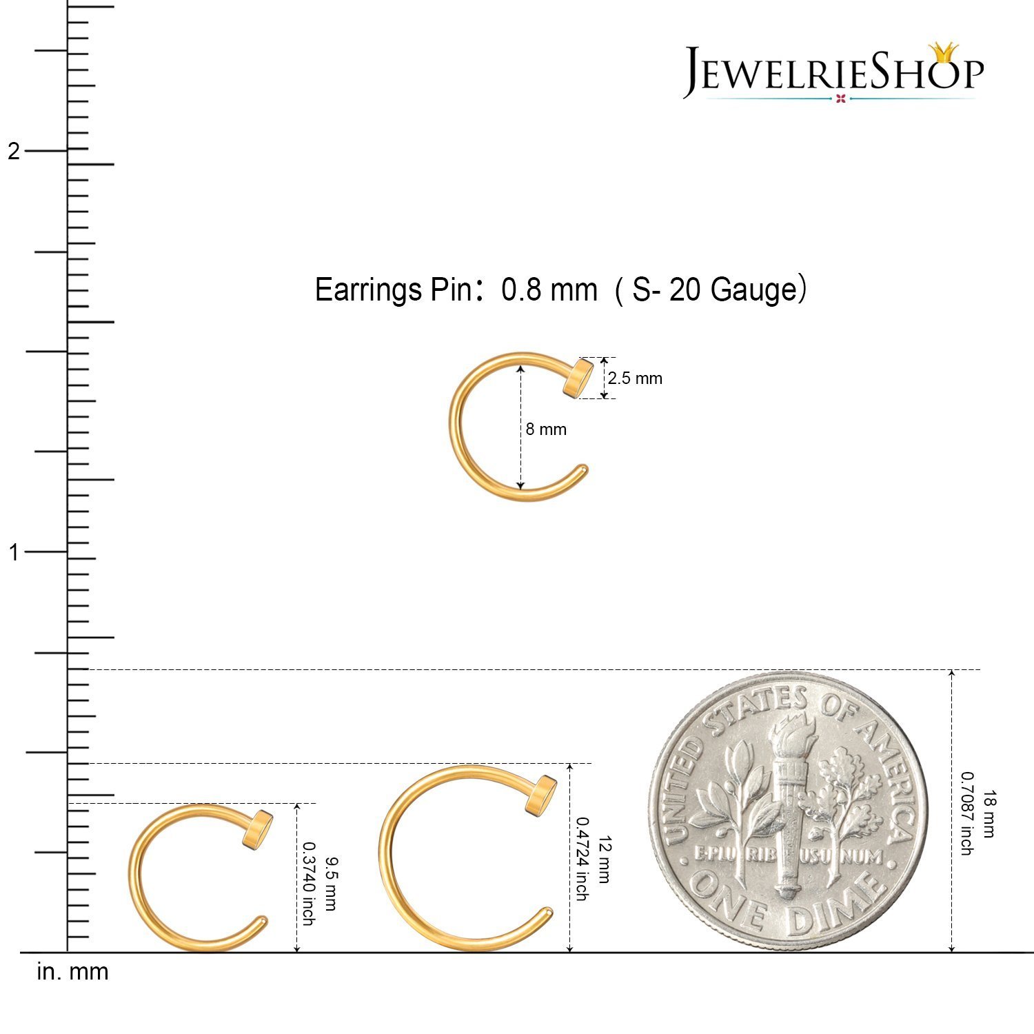- NOSE RING SET AND SIZE: A set comes with 2 pieces in Silver and Gold color. Size of ring: Outer Diameter approx. 9.5mm, Inner Diameter appox. 8mm, Pin thickness approx. 0.8mm.